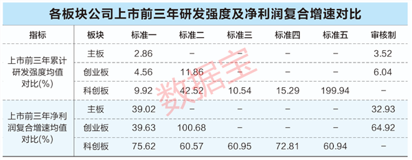 统计显示,财务方面,以创业板上市标准二上市的公司前三年净利润复合增速平均超100%,是标准一公司的2倍多;科创板上市标准四公司净利润复合增速均值超过标准二、三、五公司。